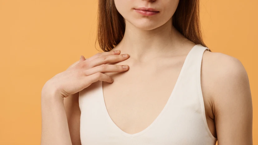- Find the center point of the band and place it under your chin, at the front of your neck.