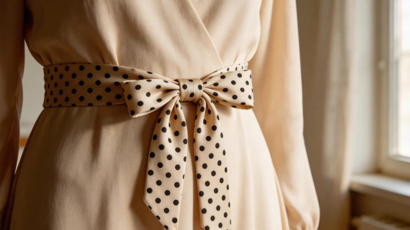Using a silk scarf as a belt adds a soft, feminine alternative to a leather belt. It works especially well with high-waisted pants, jeans, skirts, and dresses that have belt loops or a defined waistline.